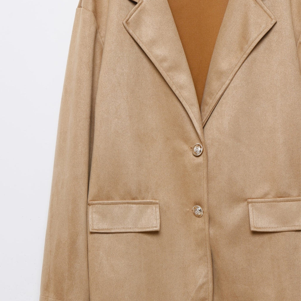 Tejido ante. Estilo blazer. Diseño oversize  recto. Cuello solapa. Manga larga. Hombros estructurados. Solapas decorativas. Sin forro. Tallaje amplio: para un efecto más ajustado pide una talla menos de lo habitual.