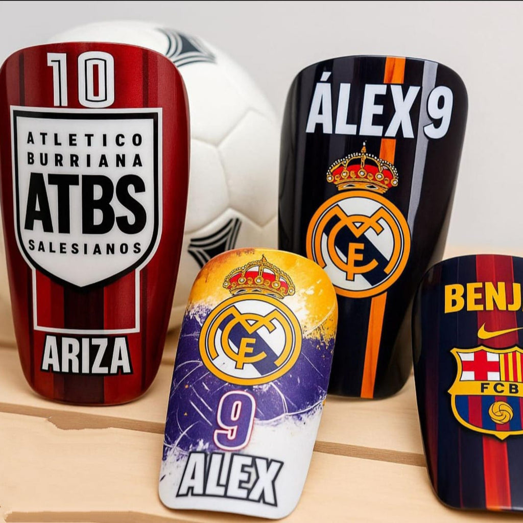 Espinilleras completamente personalizadas para los mas deportistas de la familia. Ideal y origunal para regalo de niño de comunion. Mas informacion en nuestor whatsapp 640532034.